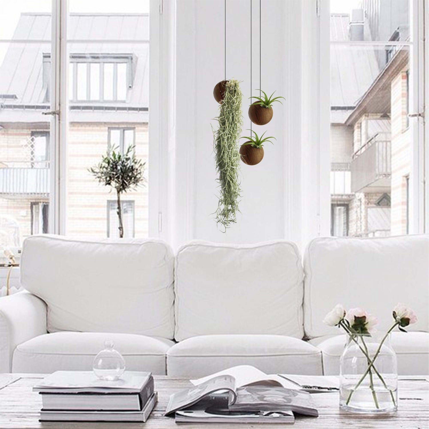 Die Sphere bietet ausreichend Platz für Airplants und schafft ein faszinierendes Hängegarten-Erlebnis, das jede Umgebung mit natürlichem Licht in eine traumhafte Atmosphäre verwandelt. Sie wirkt sowohl alleine als auch in Kombination mit weiteren Spheres besonders schön. Zum Aufhängen können Sie zwischen einem Draht aus Edelstahl, einem hochwertigen Textilkordel oder einer transparenten Schnur wählen, um einen schwebenden Eindruck zu erzeugen.