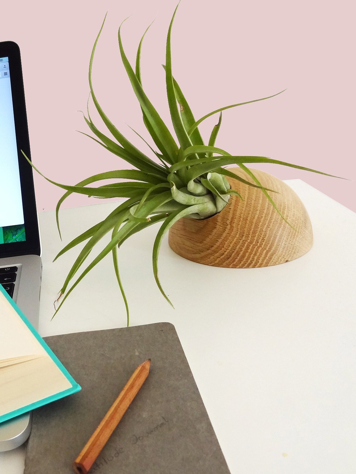 Tipp: Um das Holz länger in schönem Zustand zu erhalten und Wasserflecken zu vermeiden, empfehlen wir, die Airplants abseits der Holzhalter zu besprühen. Unsere Hemisphere in dunkler Eiche ist mit Öl behandelt und daher widerstandsfähiger gegen Wasser.
